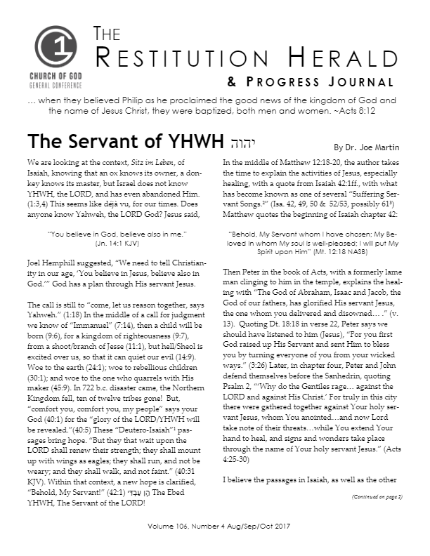Features p1 - The Servant of YHWH יהוה p4 - From the Chair p10 - Prophecy: Times of the Signs p13 - Africa Report [...]