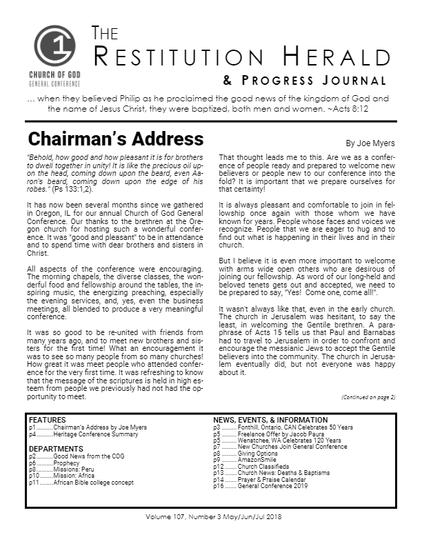 Features p1 - Chairman’s Address p4 - Heritage Conference Summary p6 - Prophecy: Club of Rome p8 - Missions: Peru Trip 2018 p10 - [...]