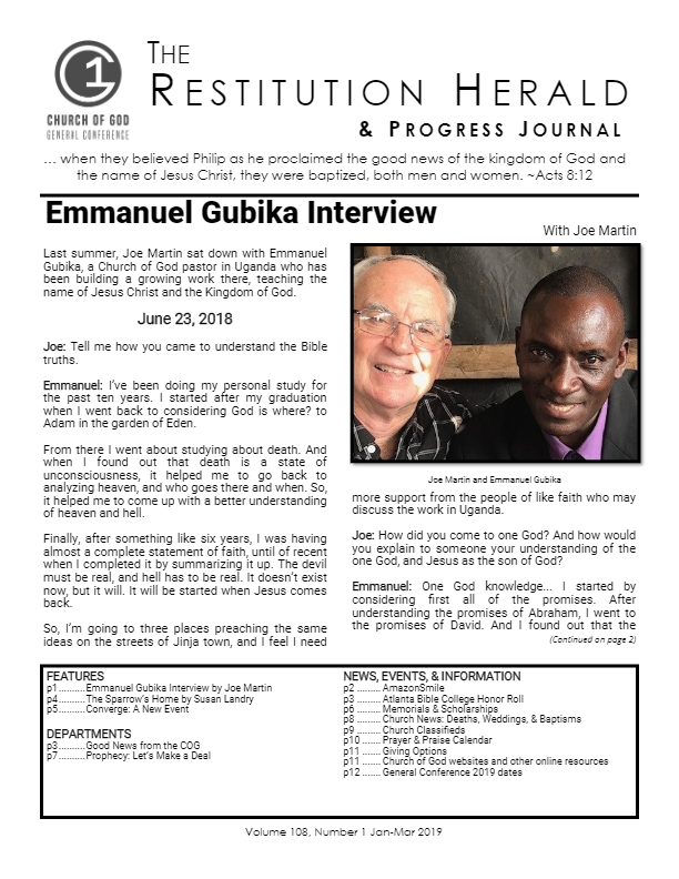 Features p1 - Emmanuel Gubika Interview p4 - The Sparrow’s Home p5 - Converge: A New Event p7 - Prophecy: Let’s Make a Deal [...]