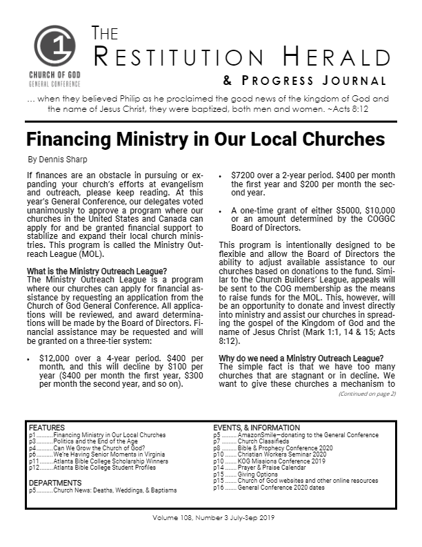 Features p1 - Financing Ministry in Our Local Churches p3 - Politics and the End of the Age p4 - Can We Grow the [...]