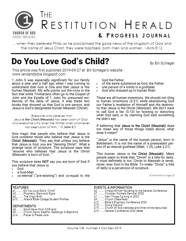 Features p1 - Do You Love God’s Child? p3 - Prophecy: Stars and Signs p4 - The Virgin Birth p10 - Atlanta Bible College [...]
