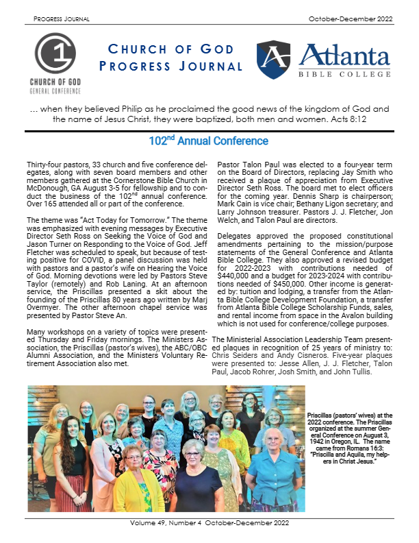 Features p1 - Message from Seth Ross, President & Executive Director - Seeking God's Will p2 - Program for 102nd Annual General Conference - [...]